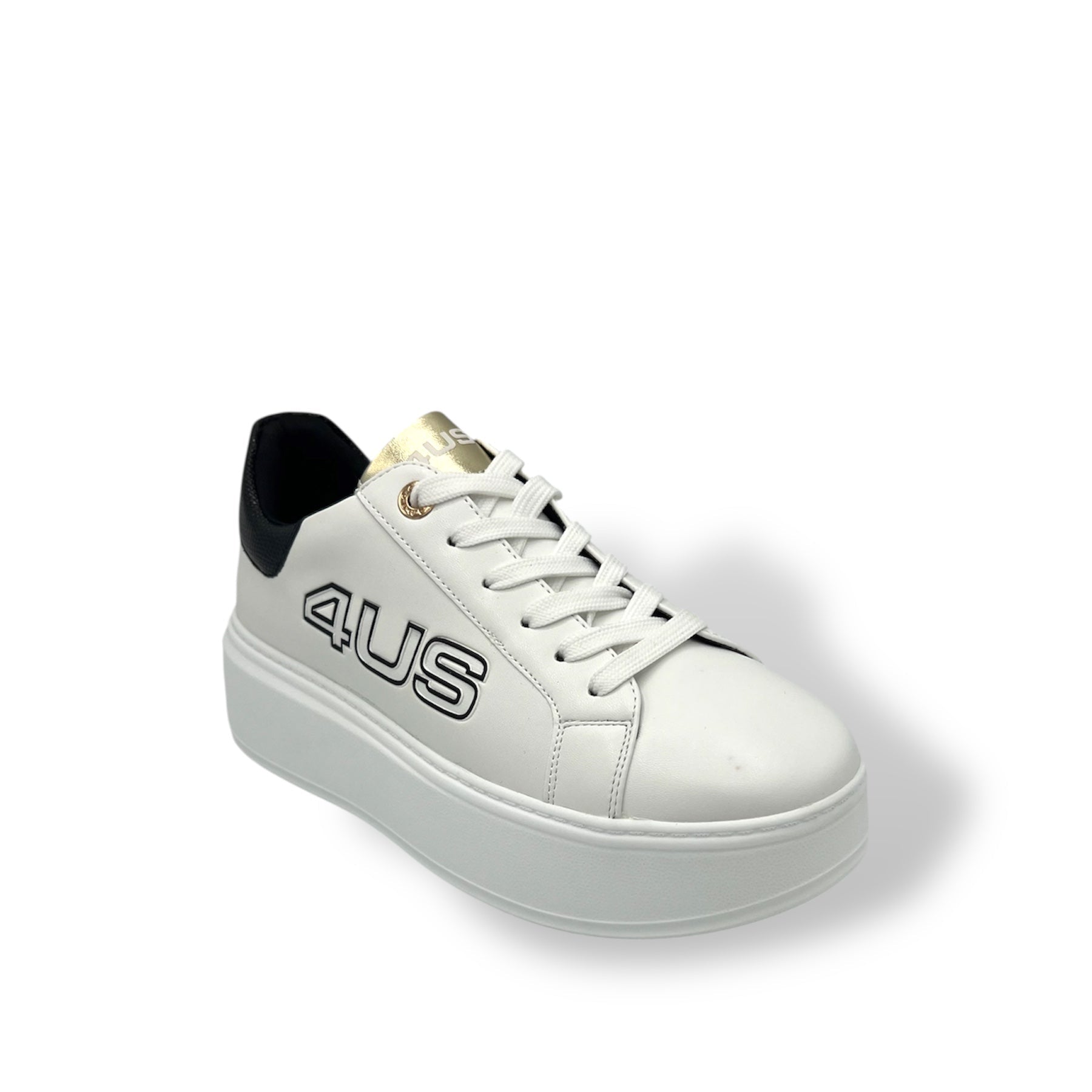 Sneakers 4US Cesare Paciotti in pelle e tessuto, caratterizzate da un design sportivo e moderno con dettagli a contrasto. La suola leggera e ammortizzata garantisce comfort e stabilità durante la camminata, mentre il logo laterale dona un tocco distintivo e riconoscibile. Ideali per completare look casual e dinamici, perfette per chi cerca uno stile contemporaneo senza rinunciare alla qualità