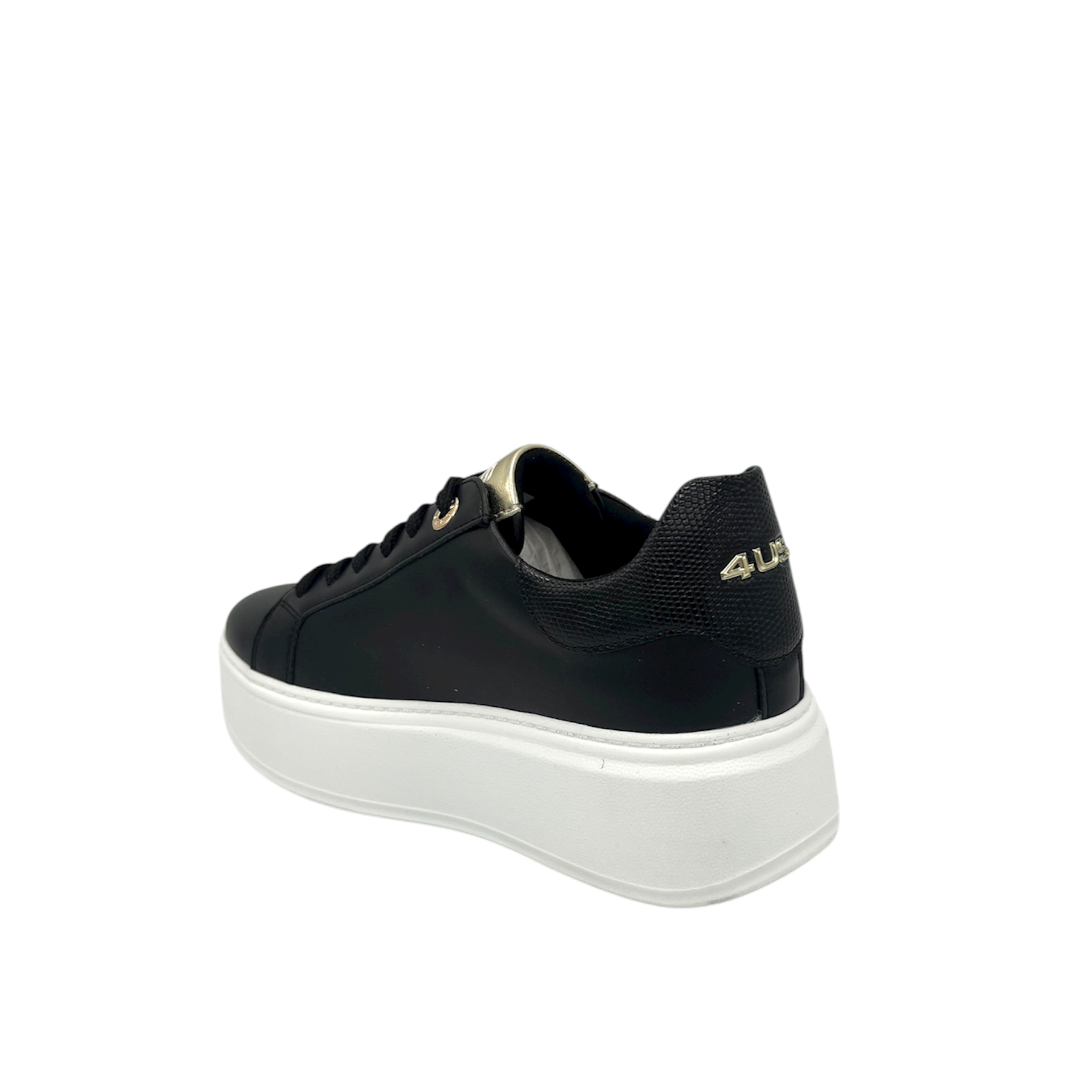 Sneakers 4US Cesare Paciotti in pelle e tessuto, caratterizzate da un design sportivo e moderno con dettagli a contrasto. La suola leggera e ammortizzata garantisce comfort e stabilità durante la camminata, mentre il logo laterale dona un tocco distintivo e riconoscibile. Ideali per completare look casual e dinamici, perfette per chi cerca uno stile contemporaneo senza rinunciare alla qualità
