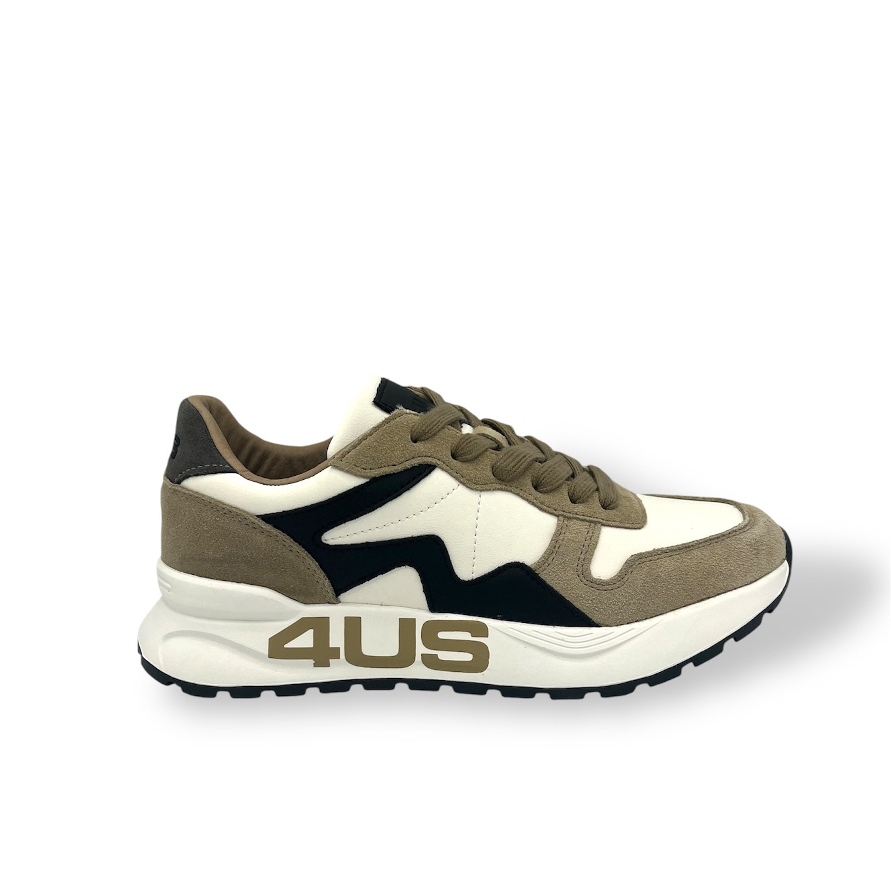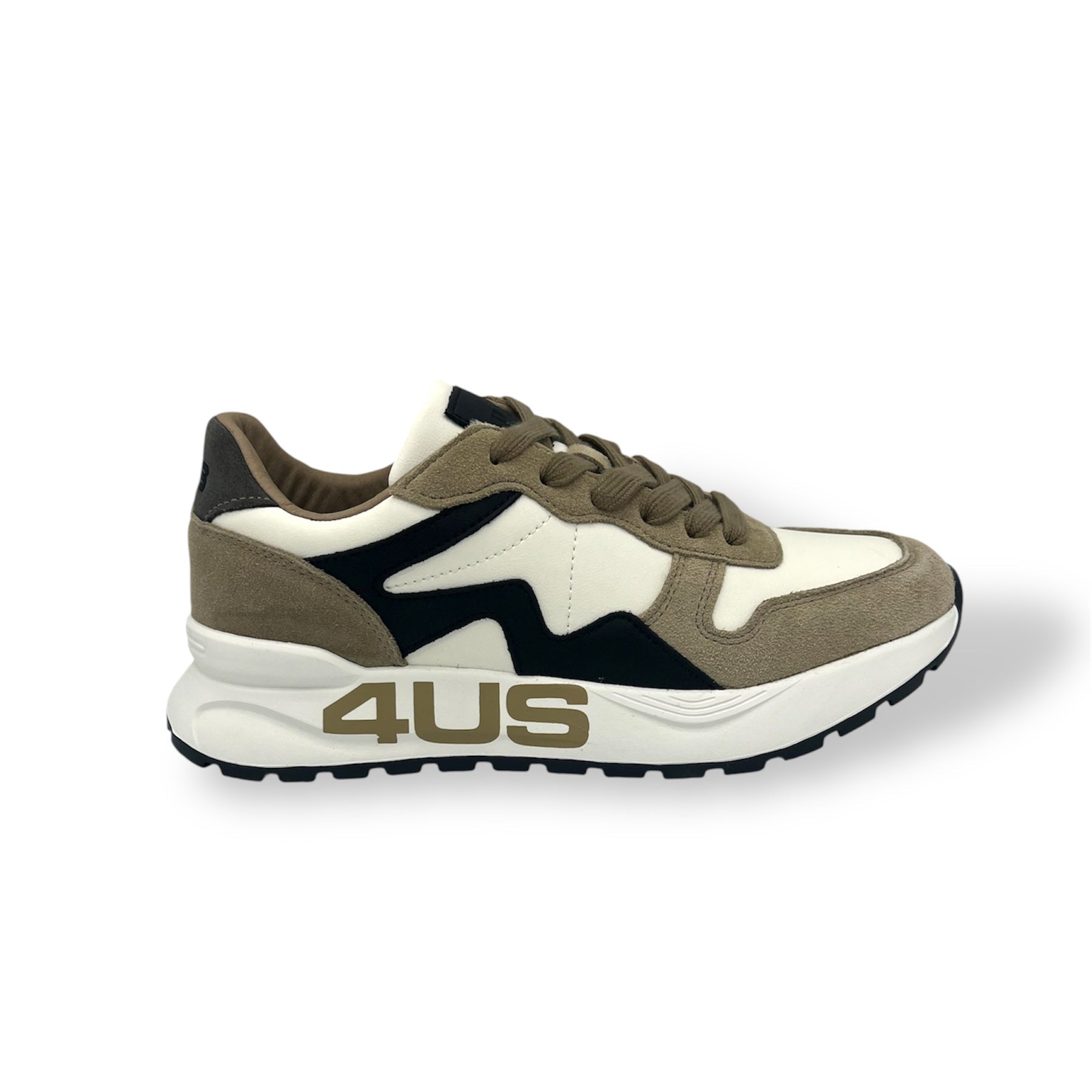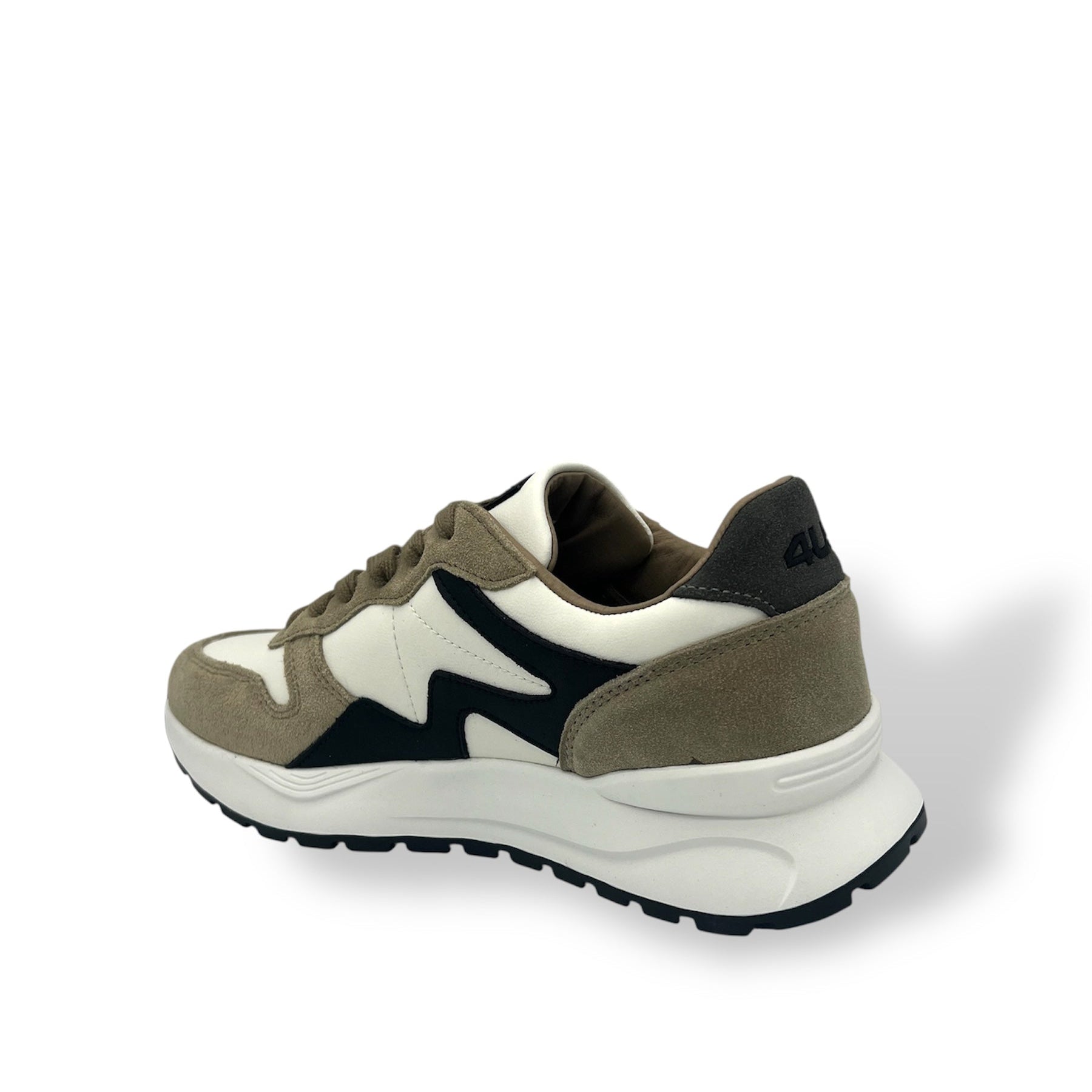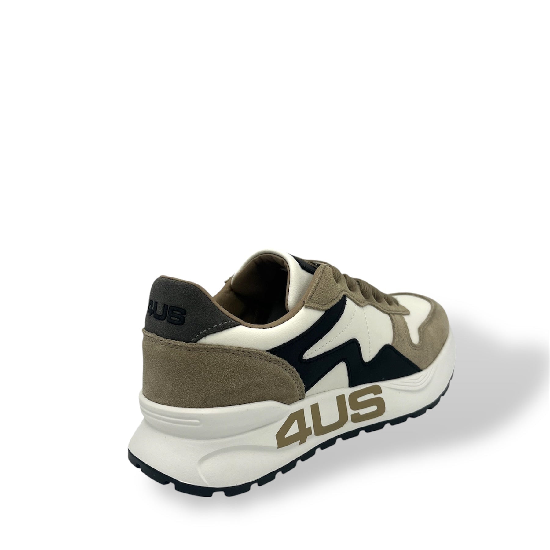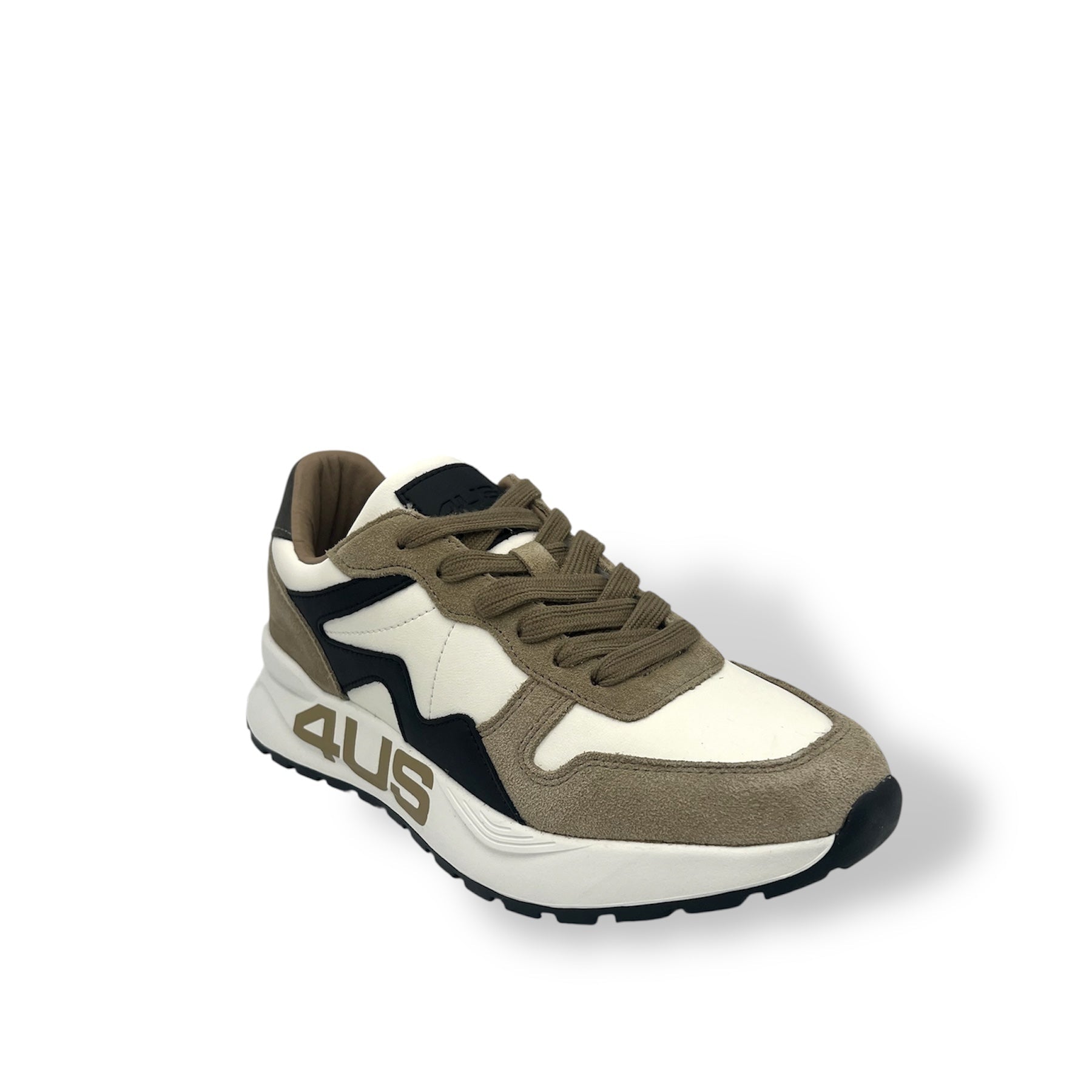 Sneakers 4US Cesare Paciotti in pelle e tessuto, caratterizzate da un design sportivo e moderno con dettagli a contrasto. La suola leggera e ammortizzata garantisce comfort e stabilità durante la camminata, mentre il logo laterale dona un tocco distintivo e riconoscibile. Ideali per completare look casual e dinamici, perfette per chi cerca uno stile contemporaneo senza rinunciare alla qualità
