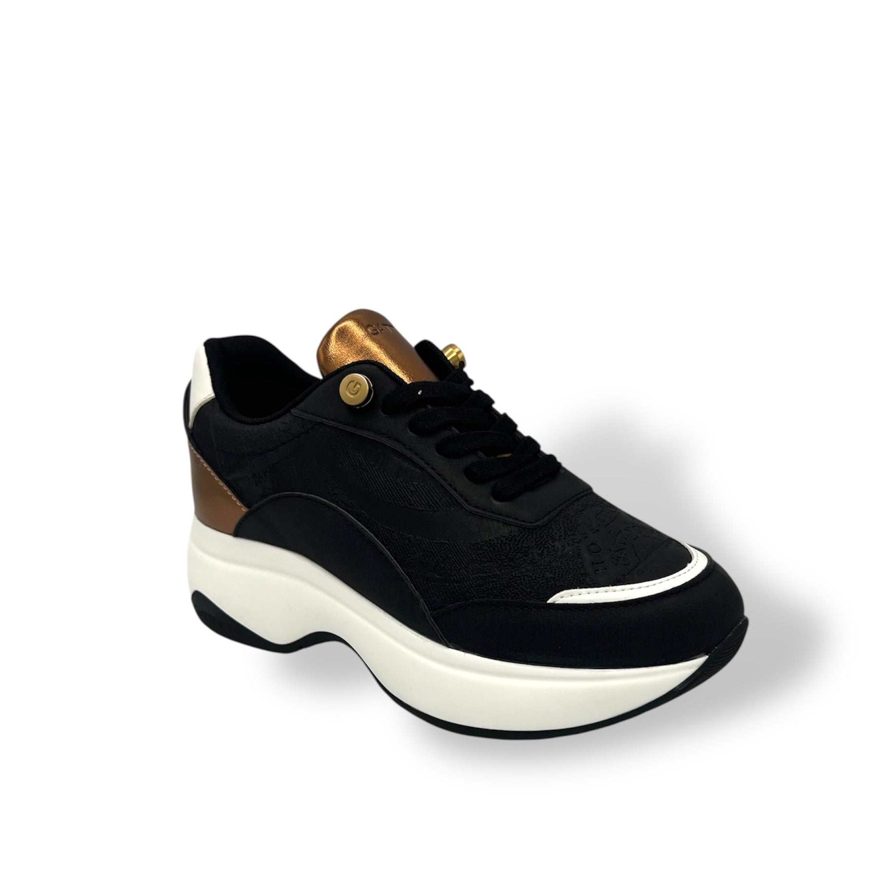 Sneakers dal design moderno e raffinato, realizzata in tessuto tecnico e pelle sintetica. La tomaia è di colore nero, arricchita da dettagli che danno un tocco elegante e versatile.