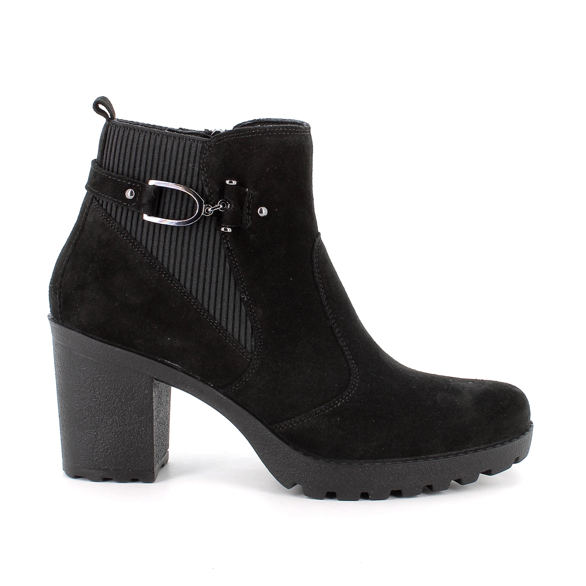 Grintosi e femminili al punto giusto, questi tronchetti con tacco alto sono la scelta perfetta per chi ama distinguersi con classe. Il dettaglio decorativo laterale aggiunge un tocco di carattere, mentre la suola scolpita assicura comfort e stabilità ad ogni passo. Versatili e sofisticati, sono l’alleato ideale per dare slancio al tuo look in ogni situazione.