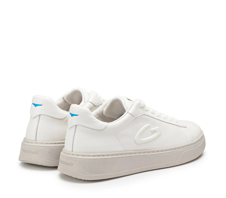 Per i look di tutti i giorni, punta sulle nuove sneakers NEW ERA di Guardiani. Presentano una combinazione di morbida pelle e camoscio, si distinguono anche per il logo sul lato della calzatura e e la suola bianca a contrasto.