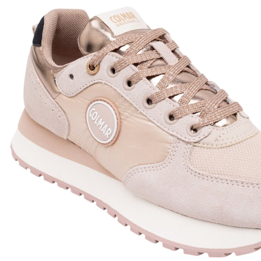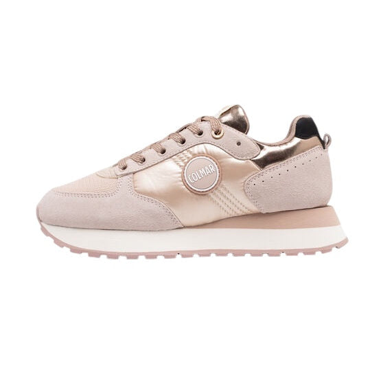 La tomaia in nylon lucente, arricchita da inserti metallizzati, dettagli in suede e rete, reinterpreta un design iconico in chiave ancora più femminile. Perfetta per l’uso quotidiano, questa scarpa con suola alta unisce eleganza e comfort, adattandosi a ogni occasione garantendo comodità dal mattino alla sera.